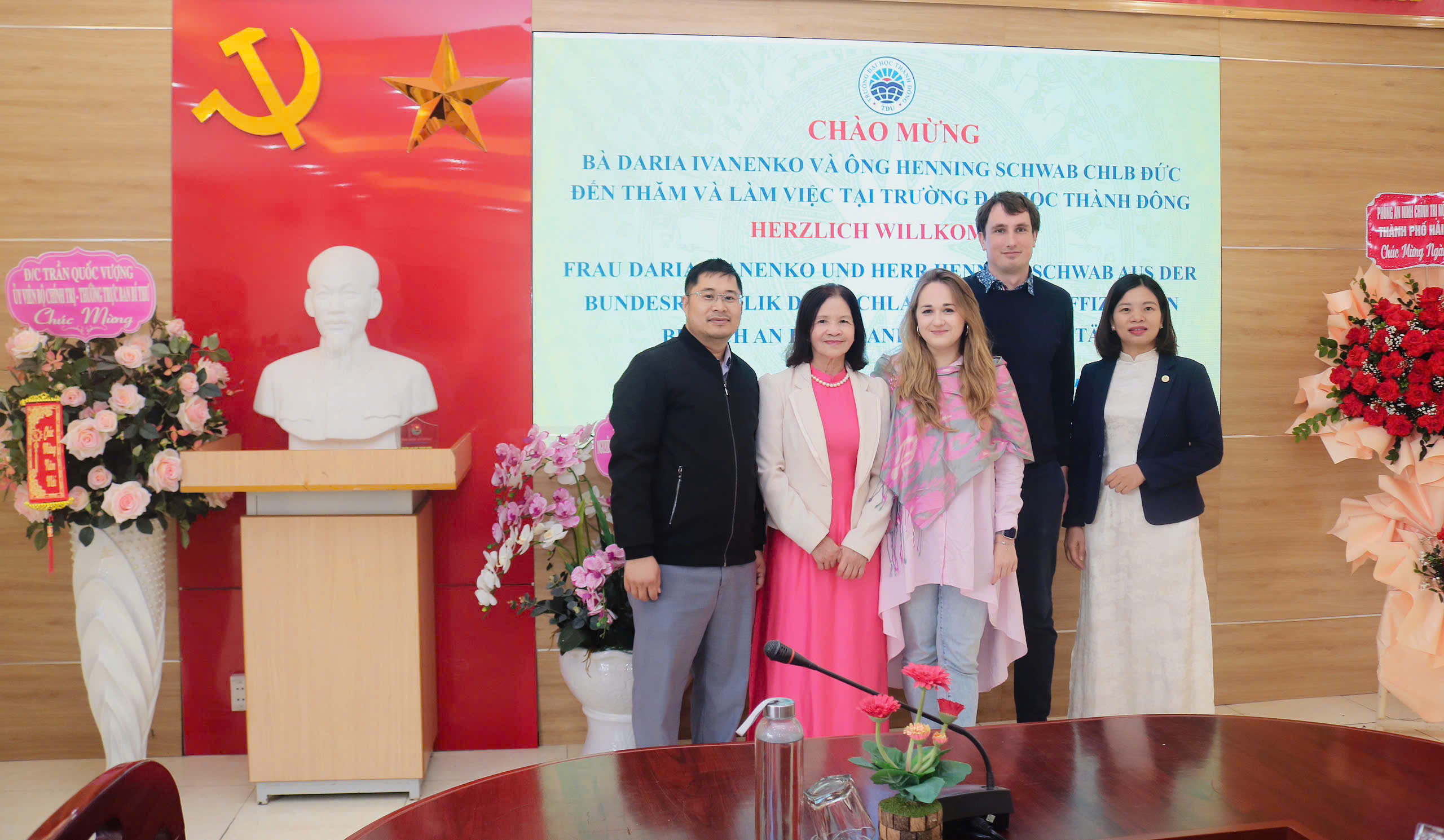 Tại buổi làm việc, bà Daria Ivanenko và ông Henning Schwab (CHLB Đức) đã trao đổi về nhu cầu tiếp nhận du học sinh của Đức trong các ngành: Điều dưỡng, Xây dựng, Nhà hàng - khách sạn, vốn đang thiếu hụt lao động nghiêm trọng. Đoàn cũng bày tỏ mong muốn mở rộng hợp tác với Trường Đại học Thành Đông trong lĩnh vực Du học nghề ngành Công nghệ thông tin, bởi Đức hiện là quốc gia có sức hút lớn về cơ hội nghề nghiệp, chế độ đãi ngộ tốt và lộ trình phát triển lâu dài.