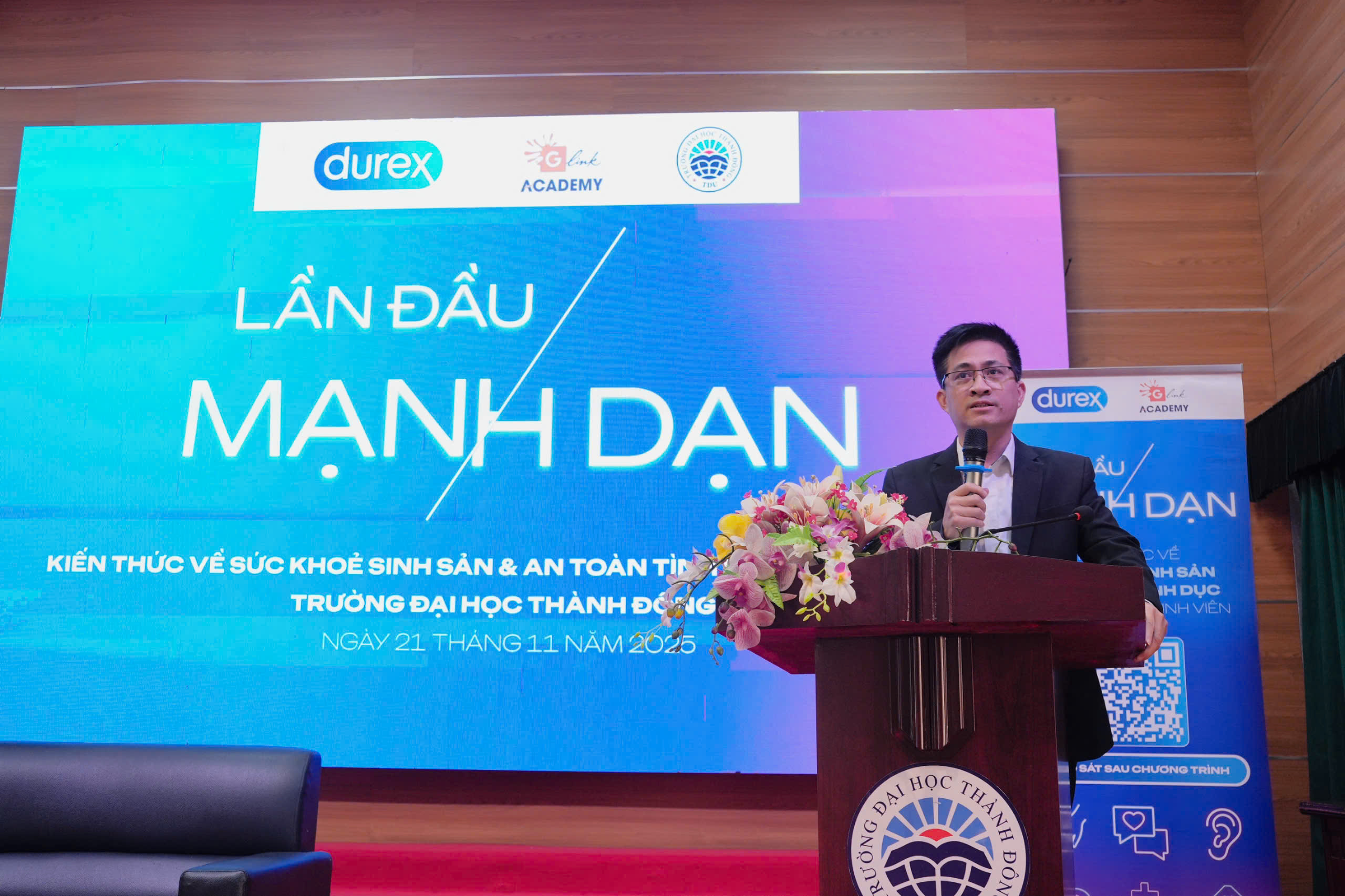 Ngày 21/11/2025, Trường Đại học Thành Đông phối hợp với Công ty TNHH DNXH Học viện GLINK và Công ty Durex Việt Nam (đơn vị tài trợ) tổ chức chương trình “Truyền thông nâng cao hiểu biết về sức khỏe sinh sản và an toàn tình dục cho sinh viên” năm học 2025-2026. Hoạt động nằm trong chuỗi chương trình tuyên truyền, giáo dục về kỹ năng sống và sức khỏe dành cho sinh viên, góp phần xây dựng môi trường học đường an toàn, lành mạnh.